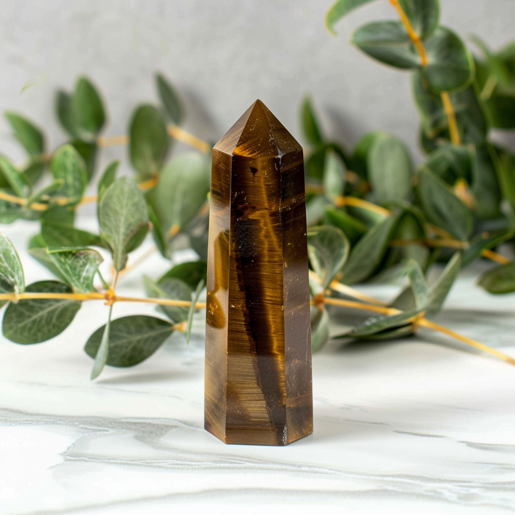 The Guardian Barrier Tower is carved from Tiger's Eye, a crystal renowned for its protective and grounding properties. Known as the "Stone of Courage," Tiger's Eye enhances self-confidence, sharpens focus, and provides mental clarity. Its mesmerizing bands of golden and brown hues reflect light in a captivating dance, symbolizing the balance of light and dark within us. This crystal is a steadfast ally in times of doubt, offering stability and courage to face challenges head-on.